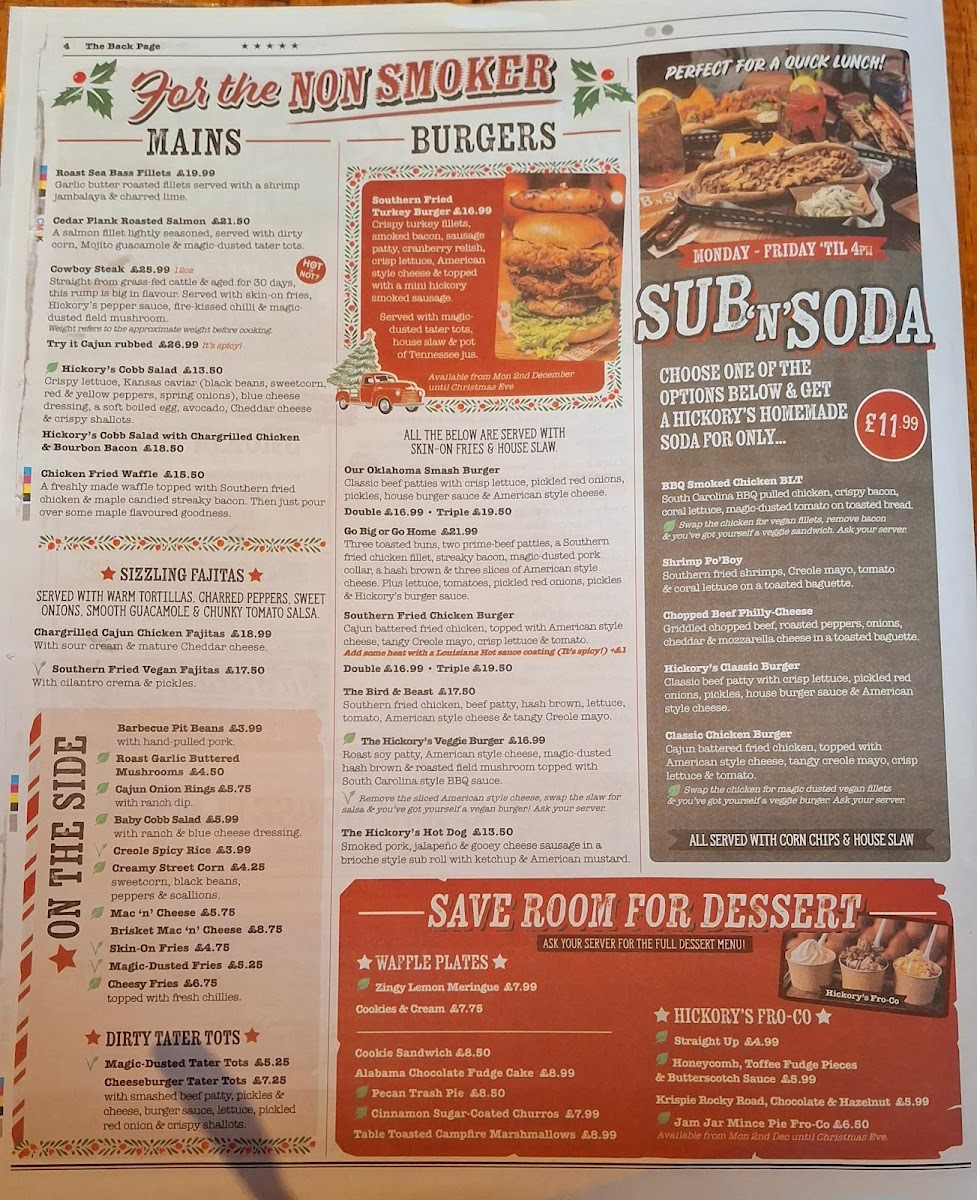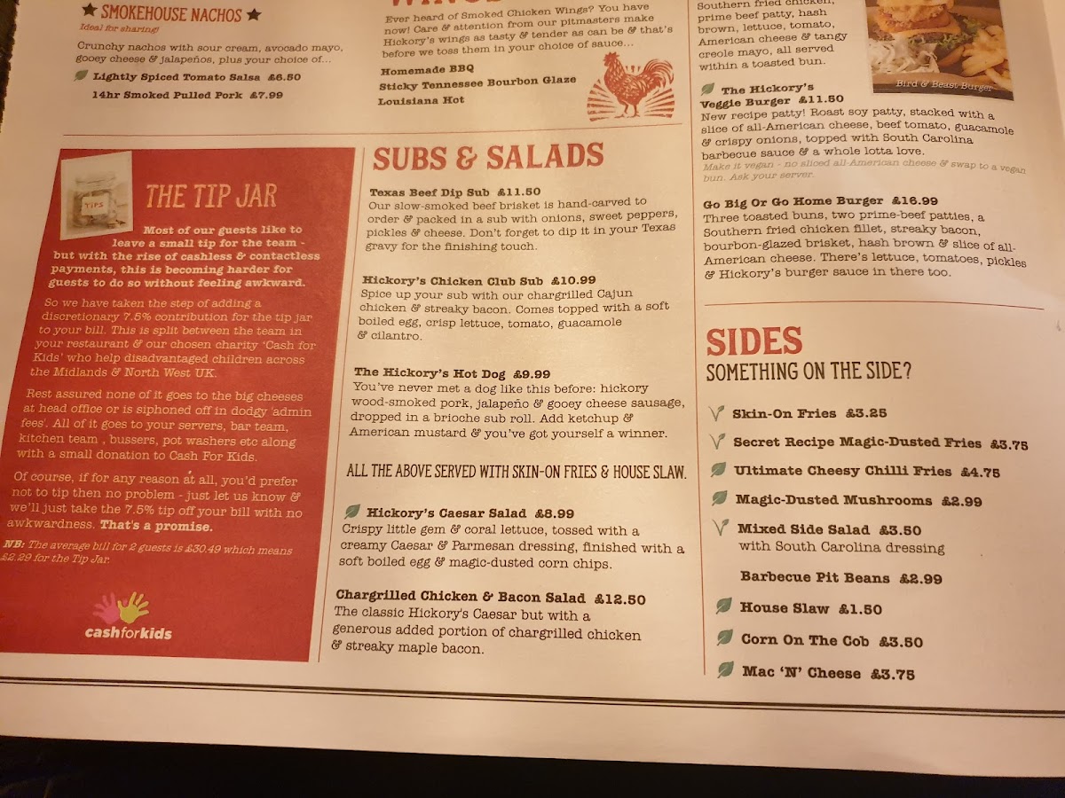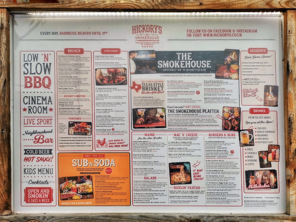 Located in the scenic Victoria Quay, Shrewsbury, Hickory's Smokehouse offers a memorable experience for barbecue lovers. With its hearty menu and inviting atmosphere, it stands out as a prime destination for those craving smoked meats and classic American comfort food. The Hickory's Smokehouse Shrewsbury menu is diverse, featuring an impressive selection of smoked meats, including tender pulled pork, juicy brisket, and flame-grilled ribs. Each dish is expertly seasoned, cooked low and slow for rich flavors and a satisfying smokiness that permeates every bite.